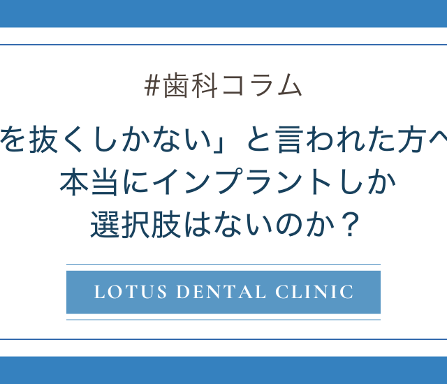 「歯を抜くしかない」と言われた方へ──本当にインプラントしか選択肢はないのか?
