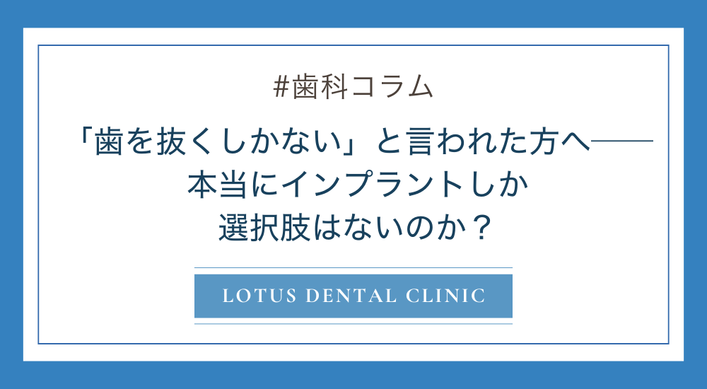 もし現在、「抜歯しかないと言われた」「インプラントをすすめられたけれど迷っている」という方は、