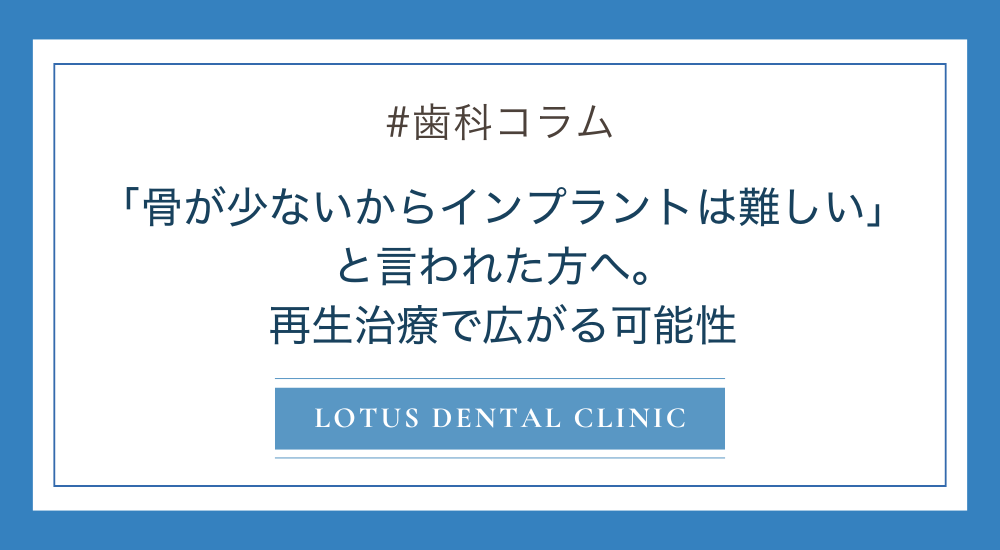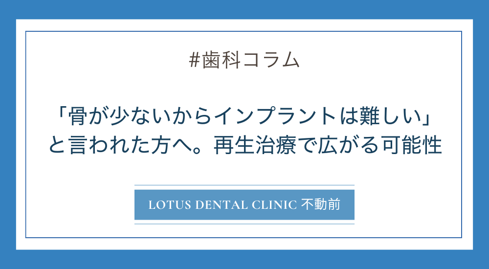 今回は、「骨が少ないから無理」と言われた方にこそ知っていただきたい、再生治療によって広がるインプラントの可能性について解説します。