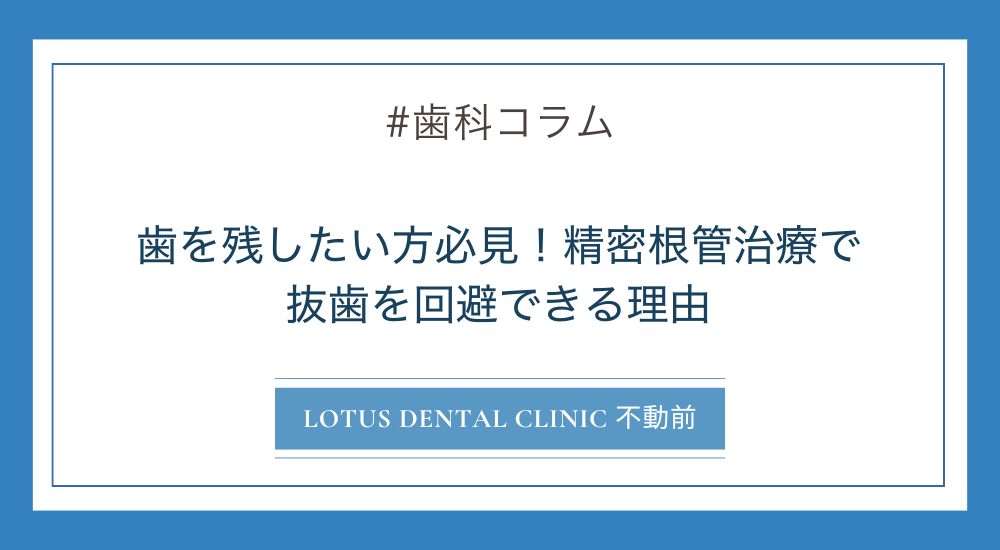 歯を残せるかどうかは、治療の精度に大きく左右されます。今回は、精密根管治療がなぜ抜歯回避につながるのか、その理由を詳しく解説します。