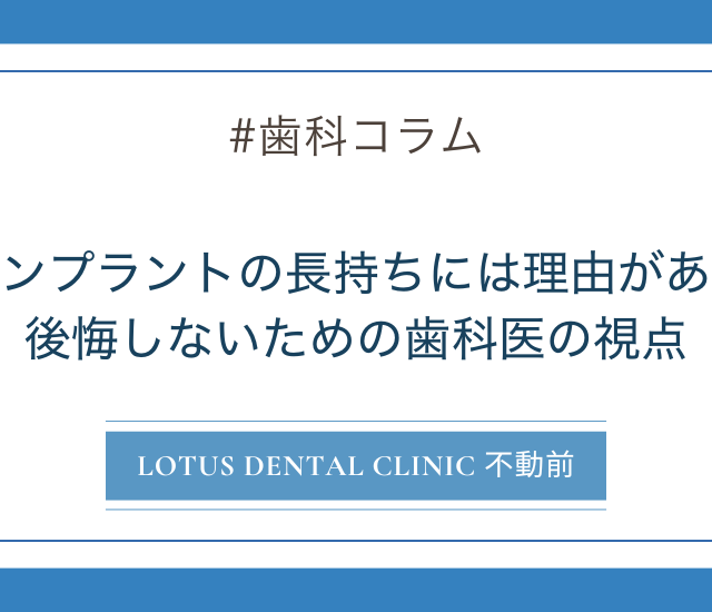 「噛むと痛い」「違和感がある」歯根破折(歯の根が割た)かも。早期診断が重要!|東京都品川区のLOTUS DENTAL CLINIC 不動前(ロータスデンタルクリニック) 2025年3月19日 歯周病とインプラント 突然の痛みと違和感…その原因は「歯根破折」かもしれません &nbs… 続きを読む